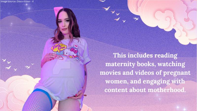 This includes reading maternity books, watching movies and videos of pregnant women, and engaging with content about motherhood.