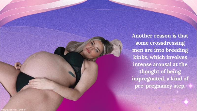 Another reason is that some crossdressing men are into breeding kinks, which involves intense arousal at the thought of being impregnated, a kind of pre-pregnancy step.