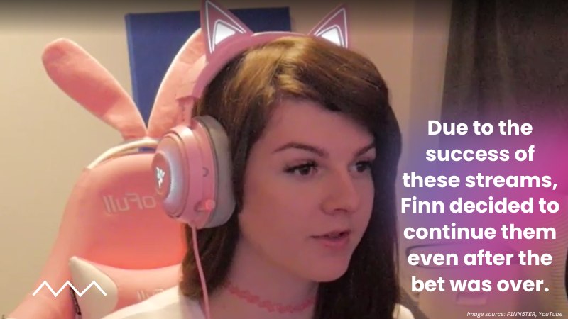 In May 2020, Finn lost another bet to one of his friends. As a result, he began streaming as his e-girl persona “Rose” on Twitch every day. These streams quickly gained popularity, drawing in a large audience. Due to the success of these streams, Finn decided to continue them even after the bet was over. A month after he started streaming, one of his fans created a highlights channel, “F1nn5terLIVE” which rapidly gained popularity.