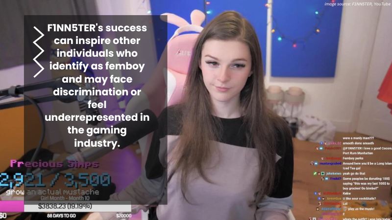 F1NN5TER’s success can inspire other individuals who identify as femboy and may face discrimination or feel underrepresented in the gaming industry. It is a reminder that everyone should be allowed to express themselves and pursue their passions without discrimination or judgment. Success can be achieved through hard work and dedication.