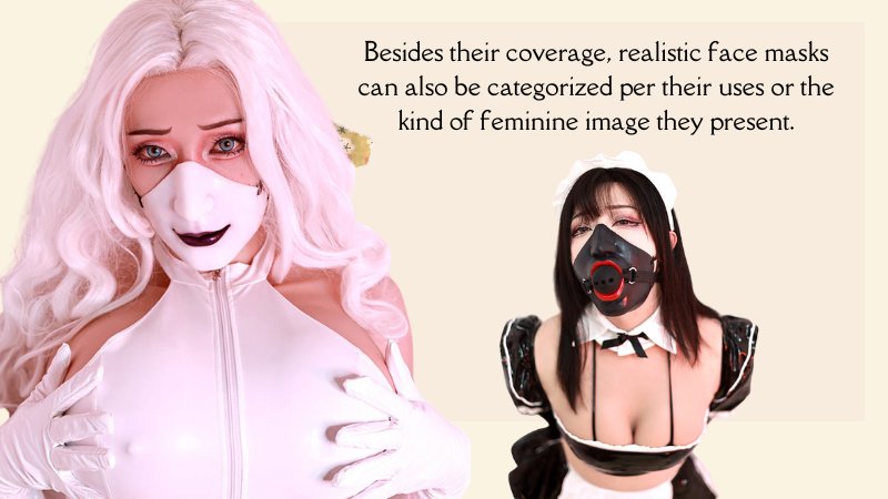 Besides their coverage, realistic face masks can also be categorized per their uses or the kind of feminine image they present.