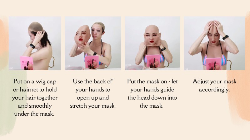 This step depends on the type of mask you’re looking to wear. While some masks require some preparation, such as applying adhesives, others, specifically overhead masks, do not require any preparation.