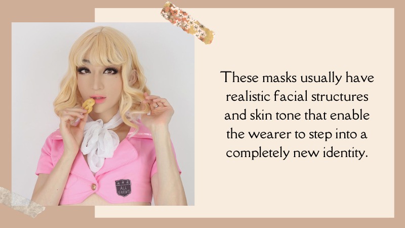 Notably, some masks are designed to offer a realistic feminine appearance, while others are intended for cosplaying.