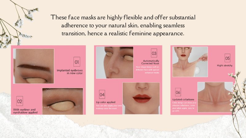 These face masks are highly flexible and offer substantial adherence to your natural skin, enabling seamless transition, hence a realistic feminine appearance.
