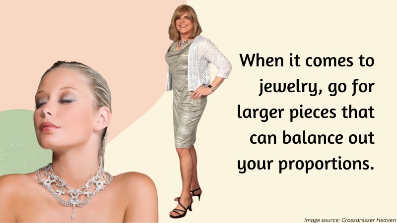 As tall crossdressers, it’s important to keep in mind the impact that accessories can have on your overall look. While accessories can certainly elevate an outfit and add a pop of personality, it’s important to choose them wisely to avoid overwhelming your frame. Avoid small or delicate accessories that can get lost in the mix, and opt instead for statement pieces that can hold their own against your height.