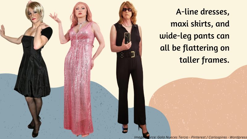 Don’t be afraid to step outside your comfort zone and experiment with different styles and trends! One of the great things about crossdressing is the ability to experiment with different styles and fashion choices. As tall crossdressers, you may want to try different styles to find what works best for your body type. A-line dresses, maxi skirts, and wide-leg pants can all be flattering on taller frames. Don’t be afraid to mix and match styles and textures to create unique outfits that showcase your individuality.