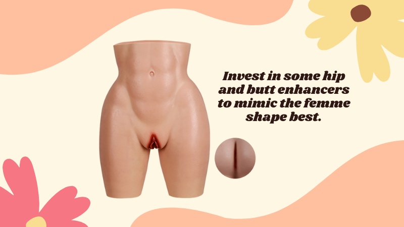 - Silicone Hip Pads: Female hips are wider, and one of the most noticeable differences there is. So, invest in some hip and butt enhancers to mimic the femme shape best.
