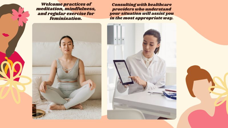 Welcome practices of meditation, mindfulness, and regular exercise for feminization. Keep your body and your mind in tip-top shape.