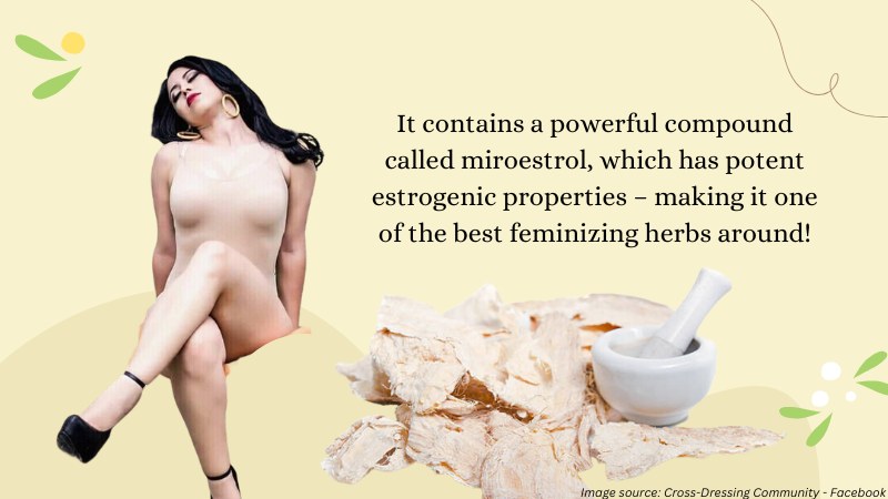 Pueraria mirifica (or Kwao Krua) is a type of flowering plant that’s been used for centuries in Asia to treat various ailments. It contains a powerful compound called miroestrol, which has potent estrogenic properties – making it one of the best feminizing herbs around! I have personally used this herb in my feminizing routine and can attest to its efficacy.