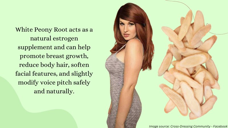 White Peony Root (or Paeonia lactiflora) is a type of flowering plant that’s been used for centuries in Asia to treat various ailments. It contains a powerful compound called paeoniflorin, which Asians have tapped into for centuries to improve libido, balance hormones and increase fertility in women. This makes it an exceptional choice for those looking to feminize naturally.