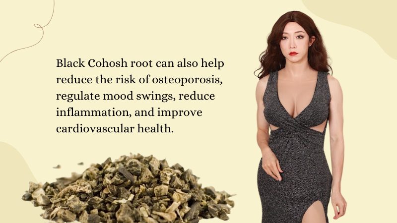 This herb is rich in many vitamins, minerals, and phytochemicals essential for a healthy lifestyle. Black Cohosh root can also help reduce the risk of osteoporosis, regulate mood swings, reduce inflammation, and improve cardiovascular health.