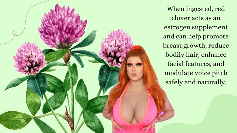 Red clover (or Trifolium pratense) is a flowering plant from the legume family. It’s been used for centuries to treat various ailments, but it’s also an effective feminizing herb due to its high concentration of phytoestrogens. When ingested, red clover acts as an estrogen supplement and can help promote breast growth, reduce bodily hair, enhance facial features, and modulate voice pitch safely and naturally.