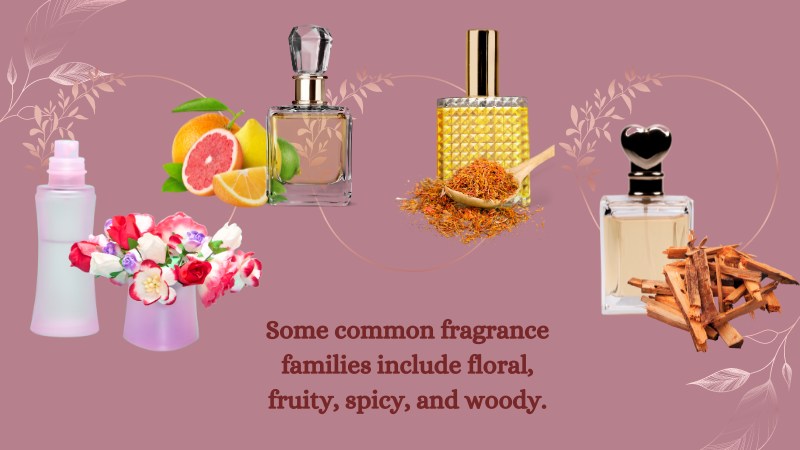 Fragrances are often classified into families based on their predominant scent. Some common fragrance families include floral, fruity, spicy, and woody. Each family can be further divided into specific notes, such as rose or jasmine for floral scents or vanilla or musk for sweet fragrances.