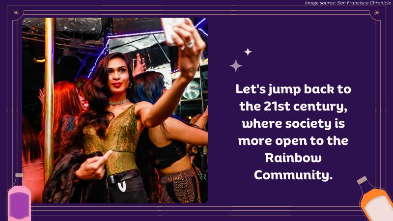 Let’s jump back to the 21st century, where society is more open to the Rainbow Community.