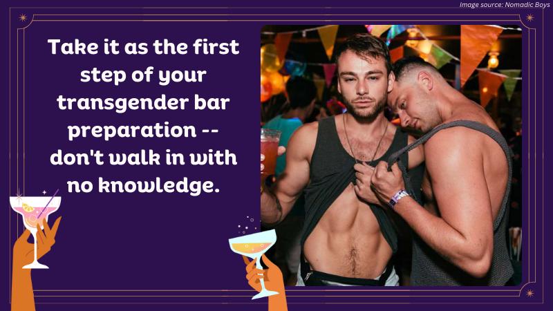 Take it as the first step of your transgender bar preparation — don’t walk in with no knowledge.