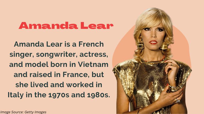 Amanda Lear is a French singer, songwriter, actress, and model born in Vietnam and raised in France. But she lived and worked in Italy in the 1970s and 1980s. She rose to prominence in the 1970s as a model and became known for her androgynous appearance and flamboyant style. Amanda Lear is a highly enigmatic figure and has cultivated a mysterious and enigmatic persona throughout her career. She had even kept what year she was born from her husband! Amanda is on this list because one of the facts that she kept to herself is what gender she was assigned at birth too! Throughout her career, Amanda Lear has been known for her boundary-pushing fashion choices and androgynous appearance. She has been considered a gender-bending icon in pop music and had the chance to mingle with none other than Salvador Dalí!