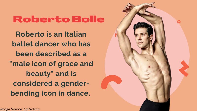 Roberto is an Italian ballet dancer who has been described as a “male icon of grace and beauty”. He is considered a gender-bending icon in dance. He has been praised for his fluid, graceful movements and androgynous style. His performances often challenge traditional gender norms in the world of dance. In many ways, Roberto Bolle’s androgynous style and graceful movements challenge traditional ideas about masculinity. He has been a major influence on many other dancers worldwide. Also he has helped to push the boundaries of what is considered “masculine” not only in the world of dance but in general too! He is considered a gender-bending icon because of his unique style and impact on the dance world. And he continues to do so for many!