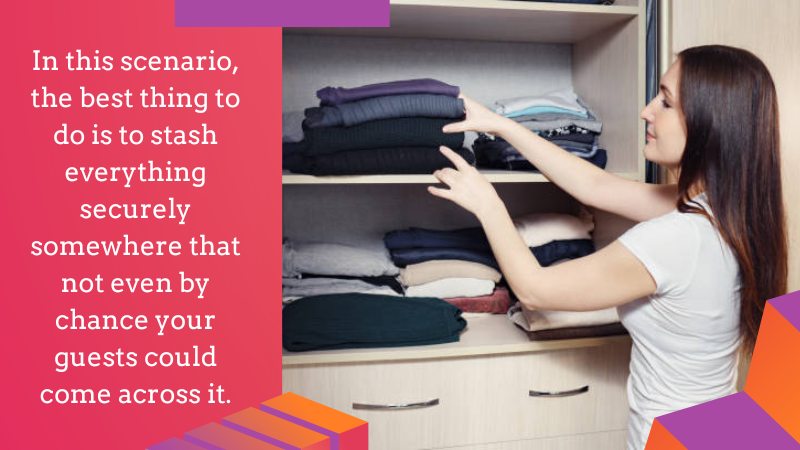 That’s why I believe that in this scenario, the best thing to do is to stash everything securely somewhere that not even by chance your guests could come across it. Don’t get me wrong, I’m not saying that you treat your guests like intruders. They wouldn’t be your guests if so. But in the excitement of having guests over, you can forget there are things that they aren’t supposed to see!