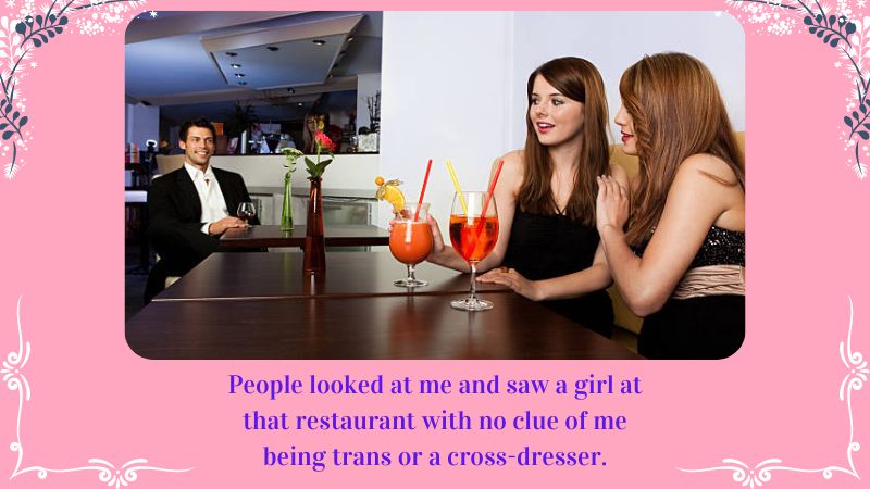 People looked at me and saw a girl at that restaurant with no clue of me being trans or a cross-dresser.