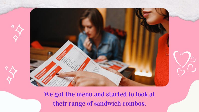 We got the menu and started to look at their range of sandwich combos.