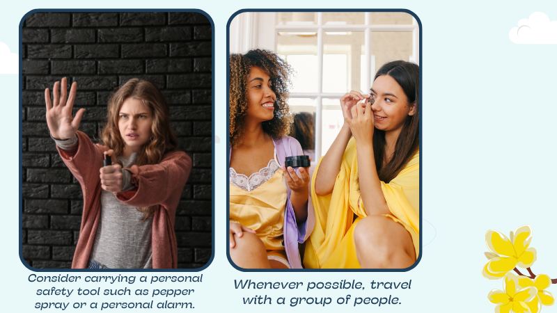 Consider carrying a personal safety tool such as pepper spray or a personal alarm.