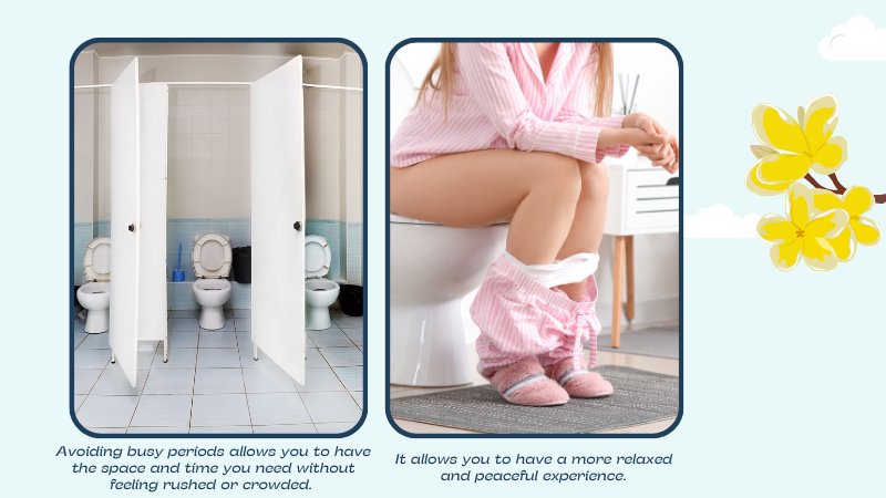 Selecting a time when the restroom is less crowded or more accessible can make using the facilities easier and more convenient.