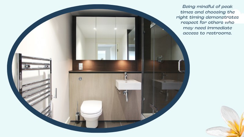 Being mindful of peak times and choosing the right timing demonstrates respect for others who may need immediate access to restrooms.
