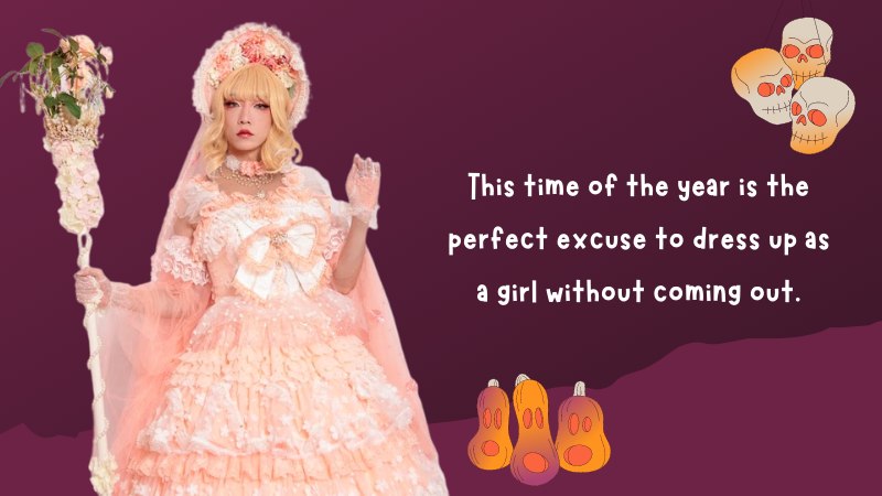 If your goal is to stand out, you shouldn’t. Use it as an opportunity to do something unique and special! People will notice your efforts if you get creative and greet you accordingly. This time of the year is the perfect excuse to dress up as a girl without coming out. So it’s understandable if you want some attention while en femme. After all, it’s a way of expressing yourself. In that case, following cliches would render the moment something forgettable. Go on, and try to make it a remarkable experience!