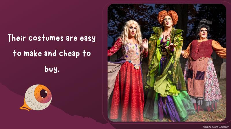 The generations of ’90s and 2000’s kids grew up watching the original “Hocus Pocus” film. I did so more times than I could count. It was broadcasted almost every October on TV since 1993 and is now regarded as a classic. The movie gained a sequel this year. It made the antagonists more relevant than ever in pop culture! I’m talking about the Sanderson sisters, the three witches from the original movie. Bette Midler, Sarah J. Parker, and Kathy Nalimy return to their roles as Winifred, Sarah, and Mary Sanderson. Their costumes are easy to make and cheap to buy. And their different builds allow cross-dressers of varying body types to dress up as them. Another good idea is to gather a group of cross-dressing friends to go out as all three of them!