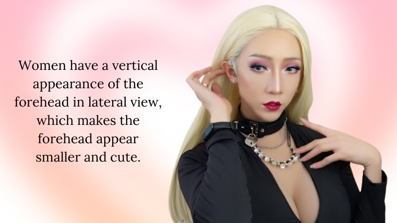 As we previously discussed, the male forehead is bigger, and to make it appear smaller and more feminine,