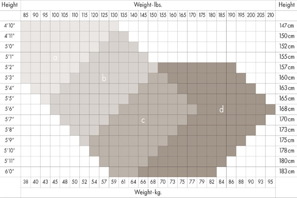 This means you’ll need to find out your size and order the stockings according to your body type to ensure they fit. Hosiery brands, in general, tend to include size charts on their packages. But if you ever doubt two sizes, choose the largest one, which will be the most comfortable for you. Here is an example chart for you to have a better idea: