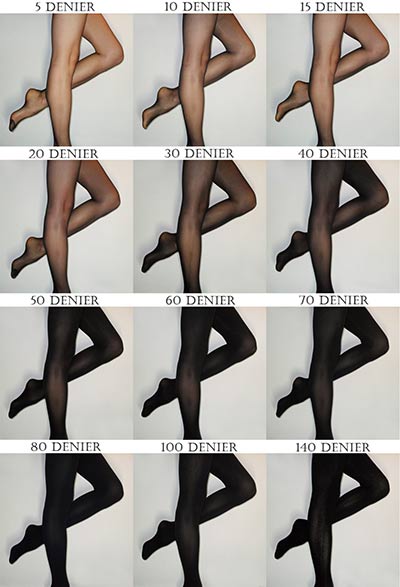 The thickness of your pantyhose is also an important aspect to keep in mind. It defines how strong and durable it will be, as well as how effective it will be in hiding your muscles and veins. The thicker it is, the smoother your legs will look when you put them on, and the less visible your skin will be. The unity used to determine the thickness of the pantyhose is the “Denier” standard, which we will be referring to as “D” from now on.