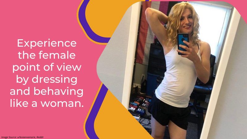 That is, you’re trying your best to experience the female point of view by dressing and behaving like a woman.