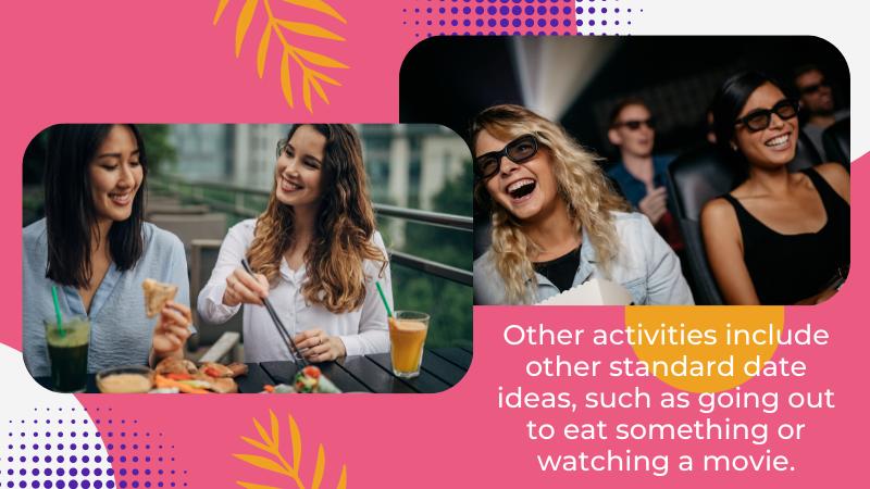 Other activities include other standard date ideas, such as going out to eat something or watching a movie.