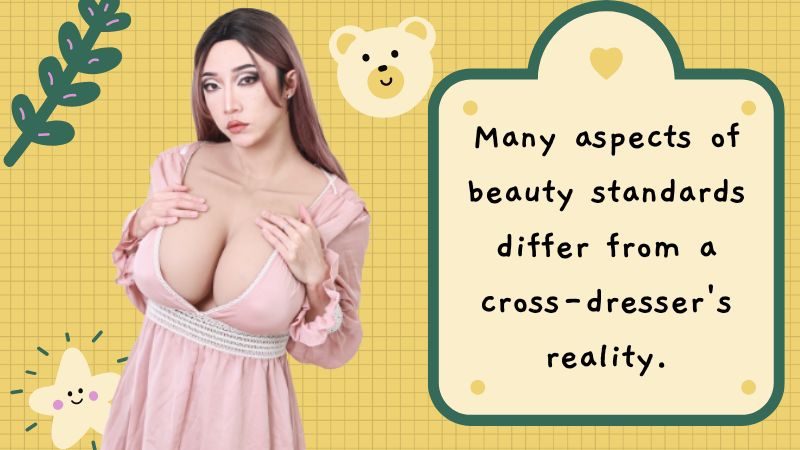 Many aspects of beauty standards differ from a cross-dresser’s reality.