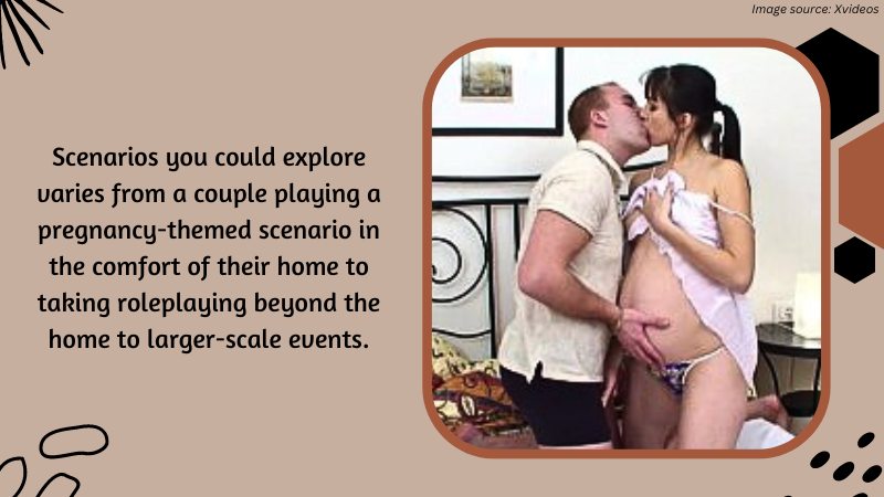 When roleplaying, creativity is key if you want to satisfy your fantasy. Scenarios you could explore varies from a couple playing a pregnancy-themed scenario in the comfort of their home to taking roleplaying beyond the home to larger-scale events. Fake bellies, maternity garments, and acting like a pregnant woman all feed into the pregnancy fantasy. It’s also an excellent method of showcasing that it’s beyond sex with a pregnant woman but the idea of pregnancy itself.