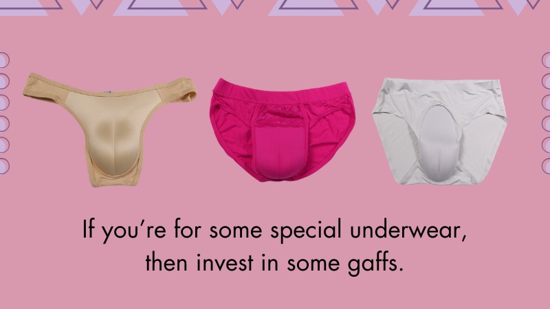 If you’re for some special underwear, then invest in some gaffs. They are special undergarments dedicated to holding everything in place.
