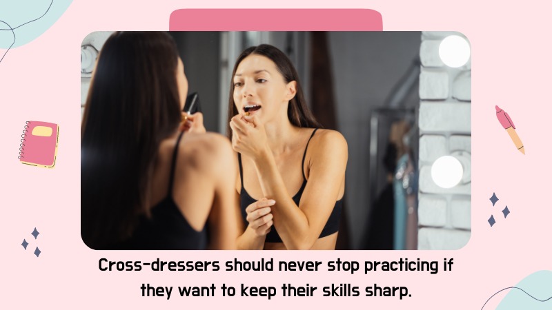 Cross-dressers should never stop practicing if they want to keep their skills sharp. The more we do it, the better we become at doing so. But in my current routine, I have little time and space for dressing up, at least for Practicing purposes. But it doesn’t mean that I’m unable to practice. Intend to do my makeup whenever I can, even if I stay with it for no more than a few minutes. Because of that, I shave my beard every couple of days and my arm and legs every week. It helps me to save time and do the makeup the right way.