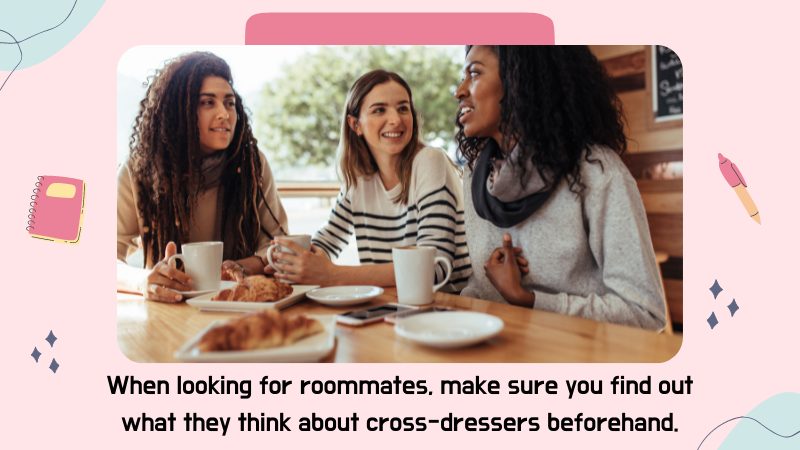 You must learn how to establish a set of convenience rules and make sure your housemates agree with them. Try getting as much privacy as possible and come.to.terms with them about the storage of your cross-dressing stuff. If you want to learn that and more, read this article, where I’ll share my own experience.