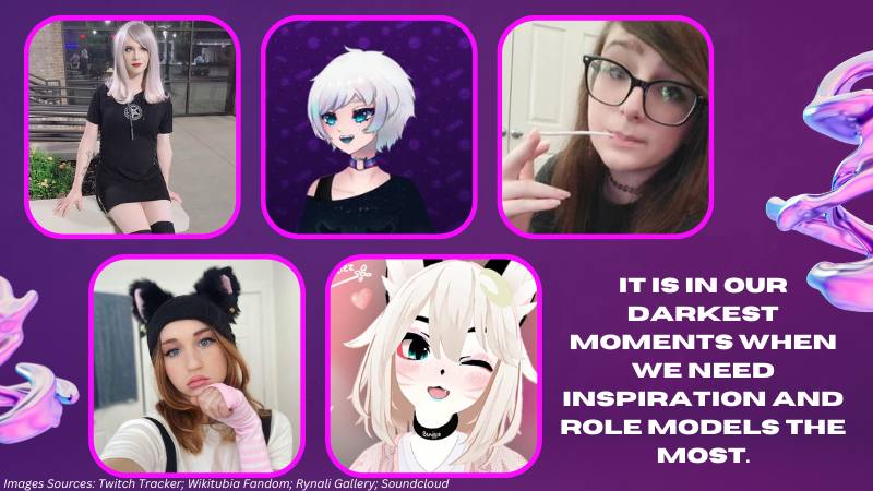 It is in our darkest moments when we need inspiration and role models the most. That is not to say that looking up to other members of the community is only good for us when we are down! I’ve already mentioned some of the most popular femboy/crossdressing streamers: F1NN5TER and Zach Scuderi (a.k.a. Sneaky). But there are many others that you should watch! Tara Pureheart, Rynali, Druskie, Dimitri Monroe, Benjy, and many more!