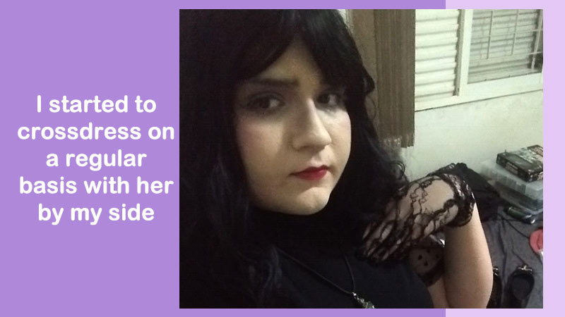 I explained how I felt, and how I identified as a gender-fluid person, and she couldn’t be more comprehensive. She helped me with makeup, and to shop for new stuff. She was with me when I bought my very first wig and taught me how to hide it. I started to crossdress on a regular basis with her by my side, and my self-esteem saw a massive increase. I finally felt that I was being my true self. I regard this as the actual beginning of my crossdressing trip, with enough knowledge, support and confidence.