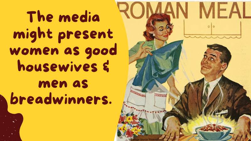 For example, the media might present women as good housewives and men as breadwinners.