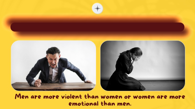 For example, we might learn that men are more violent than women or that women are more emotional than men.