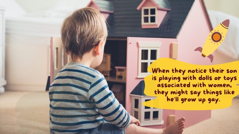 When they notice their son is playing with dolls or toys associated with women, they might say things like this, which means he’ll grow up gay.
