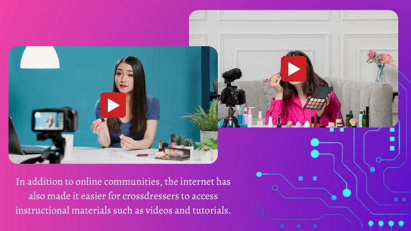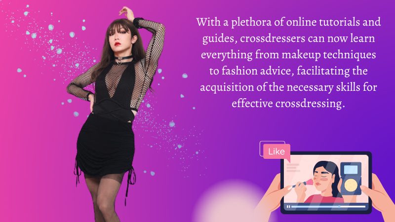 The emergence of social media platforms such as YouTube has greatly expanded the resources available to crossdressers. With a plethora of online tutorials and guides, crossdressers can now learn everything from makeup techniques to fashion advice, facilitating the acquisition of the necessary skills for effective crossdressing. Furthermore, online resources enable crossdressers to learn at their own pace and in the privacy of their homes, eliminating the discomfort or safety concerns that might arise in traditional in-person classes or workshops. As a result, crossdressers can now more easily develop their craft and feel more confident expressing themselves.