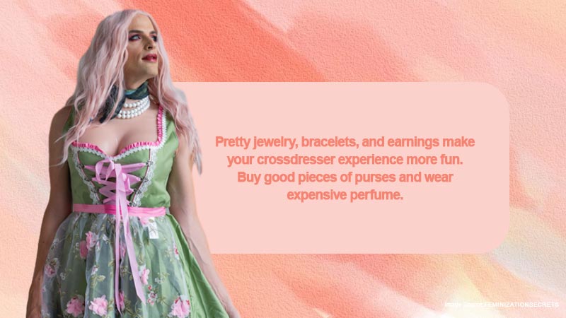 Pretty jewelry, bracelets, and earnings make your crossdresser experience more fun. Buy good pieces of purses and wear expensive perfume.