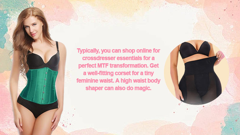 Typically, you can shop online for crossdresser essentials for a perfect MTF transformation. Get a well-fitting corset for a tiny feminine waist. A high waist body shaper can also do magic.
