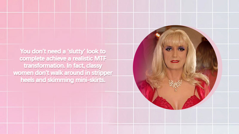 You don’t need a ‘slutty’ look to complete achieve a realistic MTF transformation. In fact, classy women don’t walk around in stripper heels and skimming mini-skirts.