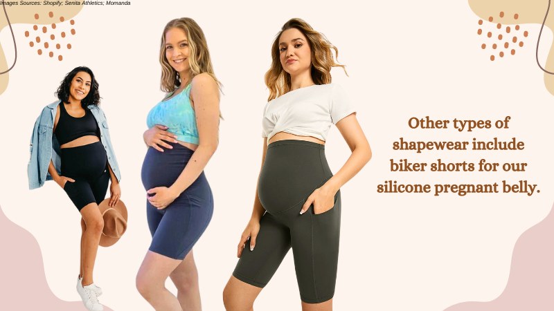 Other types of shapewear include biker shorts for our silicone pregnant belly. To avoid skin irritation, always ensure that the shapewear is appropriately fitting.
