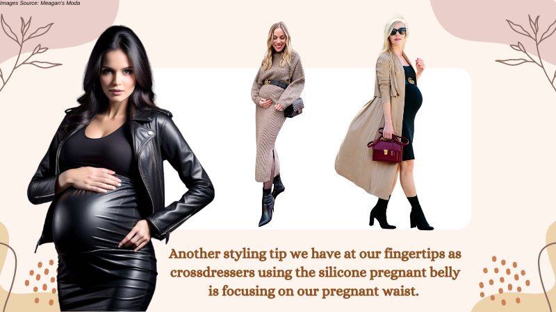 Another styling tip we have at our fingertips as crossdressers using the silicone pregnant belly is focusing on our pregnant waist. One thing about a pregnant belly is that it tends to snug clothes at the waistline waistline.